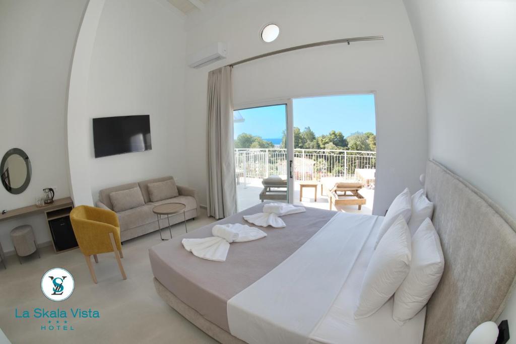 Cazare confortabilă: La SkalaVista din Skala oferă camere de familie cu aer condiționat, băi private și vedere la grădină sau la mare. Fiecare cameră include balcon, terasă sau patio, asigurand o ședere plăcută.