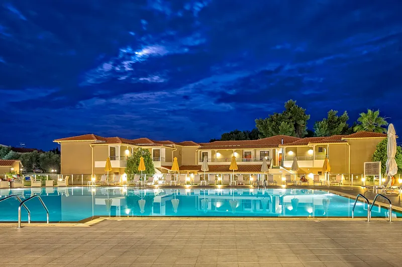Lagomandra Hotels include two hotel complexes... situated 30 metres from the beach and expanding amphitheatrically in a location where the view of the deep blue sea, the golden beach and the bright green environment create an irresistibly enchanting combination for all visitors to enjoy.