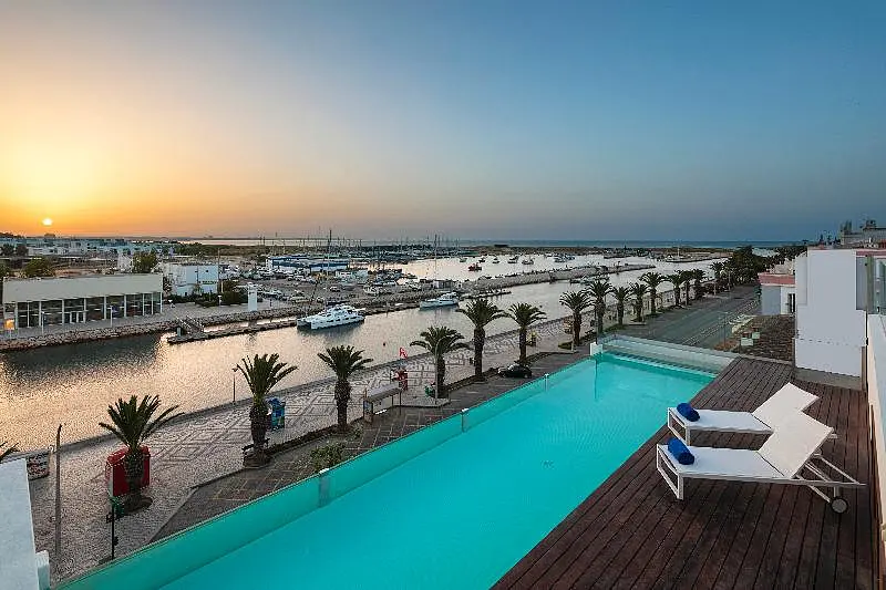 Lagos Avenida Hotel With 47 rooms located within the Lagos City Center, at a 7 minute walk from Meia Praia Beach. There is a rooftop bar With and infinity pool and amazing views of the Marina as well as the sea. Each modern room offers either a balcony or a terrace with lovely views to the Marina and the City. Every room is equipped with state of the art air-conditioning, TV and bathrooms with all the essential amenities.
