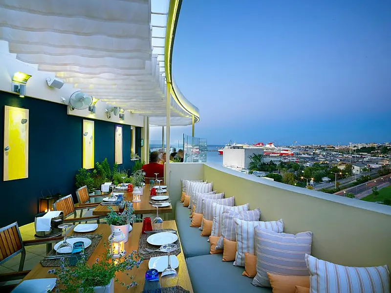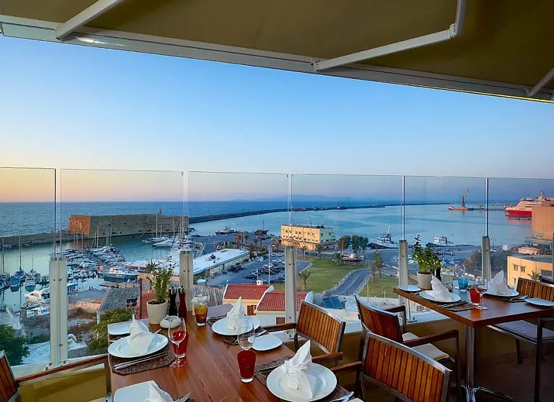 in centrul orasului Heraklion, cu vedere catre port si catre Castelul Venetian Koules.