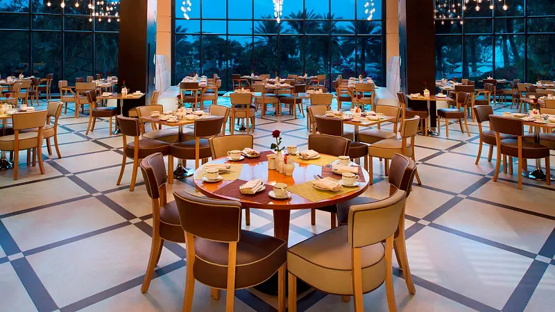 Descriere concept All Inclusive Standard: cele 3 mese principale (mic djeun, dejun si cina) cu posibilitatea servirii acestora in regim bufet sau a la carte in restaurantul principal. Pentru cei care doresc sa manance in oricare alt restaurant se va acorda un credit de 19 USD/PAX pntru dejun si 27 USD/PAX pentru cina. Se vor plati suplimente doar pentru urmatoarele tipuri de preparate: Homar Omani, Vita Waqu si Creveti Regali. Bauturile incluse sunt brad-uri locale: apa minerala, bauturi racoritoare, bere, vin, bauturi spirtoase, toate servite la pahar si servite doar intre orele 12:00 – 24:00 in restaurantul Views, la piscina Baywatch si barul de la plaja. Copiilor li se servesc: apa minerala si bauturi racoritoare.