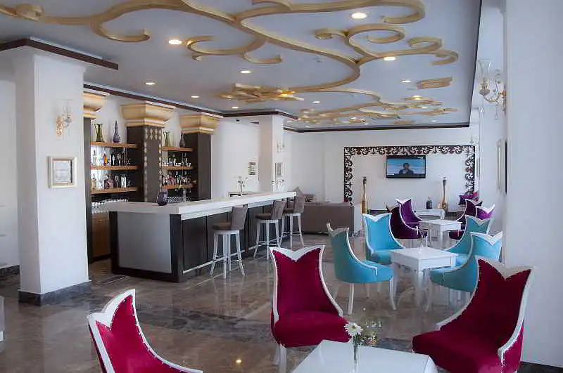 Enjoying an idyllic setting on the beach in Side, this delightful hotel offers guests the perfect place in which to relax, or from which to explore the area. Just a short walking distance away lie a host of cultural and historical attractions just waiting to be discovered. Guests will find themselves just 450 metres from the Ancient City. Enjoying an attractive architectural style, the hotel blends Turkish design with contemporary conveniences. The guest rooms are sumptuously designed, offering soothing tones and a relaxing ambience in which to completely unwind at the end of the day. Guests will be impressed by the hotels wide array of exemplary facilities, which ensure that the needs of even the most discerning travellers are catered for.