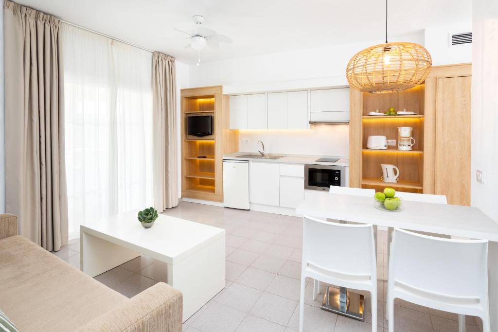 Apartamentele Los Olivos Beach Resort au decor modern și balcon mobilat, cu vedere la grădină. Lounge-urile sunt dotate cu TV cu plasmă prin satelit, seif și canapea, iar chicinetele includ un cuptor, ceainic și cuptor cu microunde.