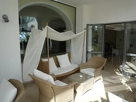 240 camere, piscina, 2 terenuri de tenis din care unul multifunctional, program animatie, gama larga facilitati de divertisment, badminton, mini football, volei, aerobic, restaurant interior "Nausicaa", restaurant in aer liber "Onissilos", bar principal "Alkinoos", bar la plaja "Venus", bar la piscina, magazin de suveniruri, colt internet, internet WIFI in lobby (contra cost), birou de schimb valutar, medic (la cerere, contra cost), rent-a-car, inchirieri biciclete, piscina copii, mini club, loc de joaca pentru copii.