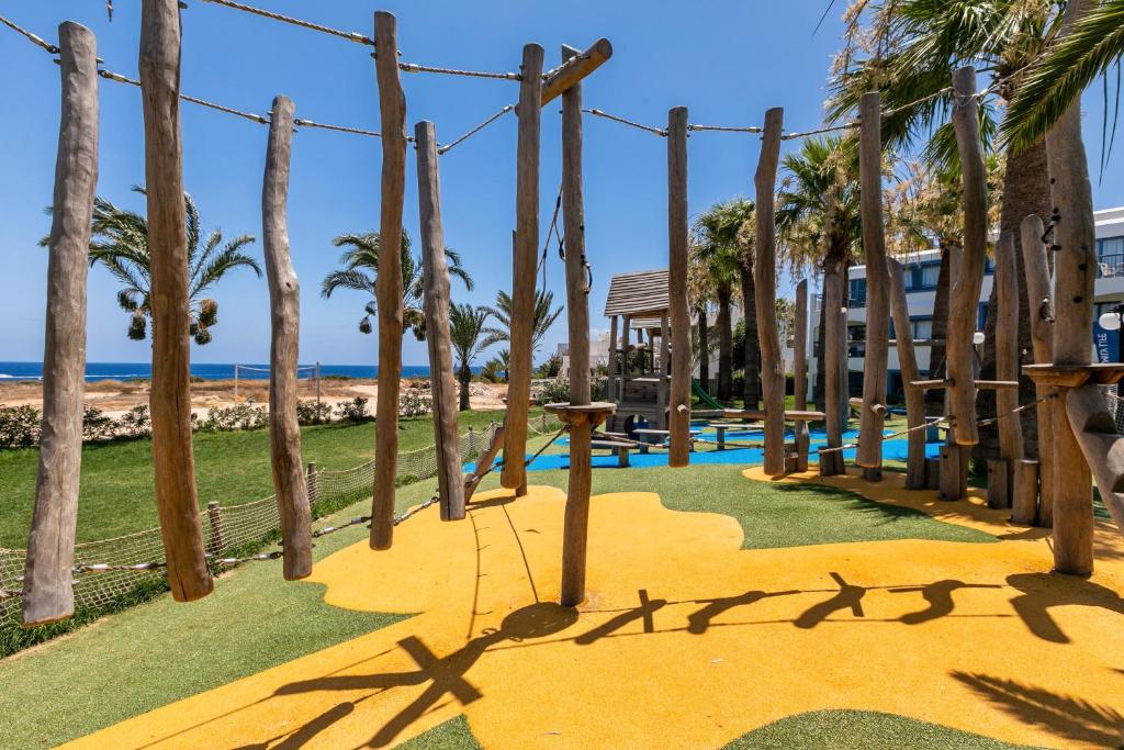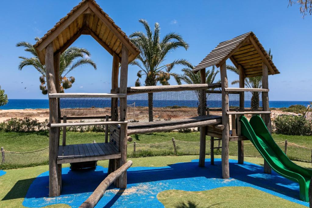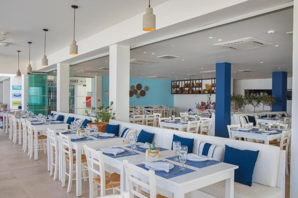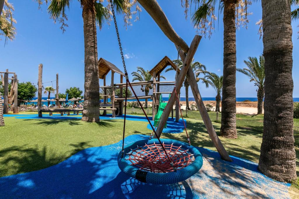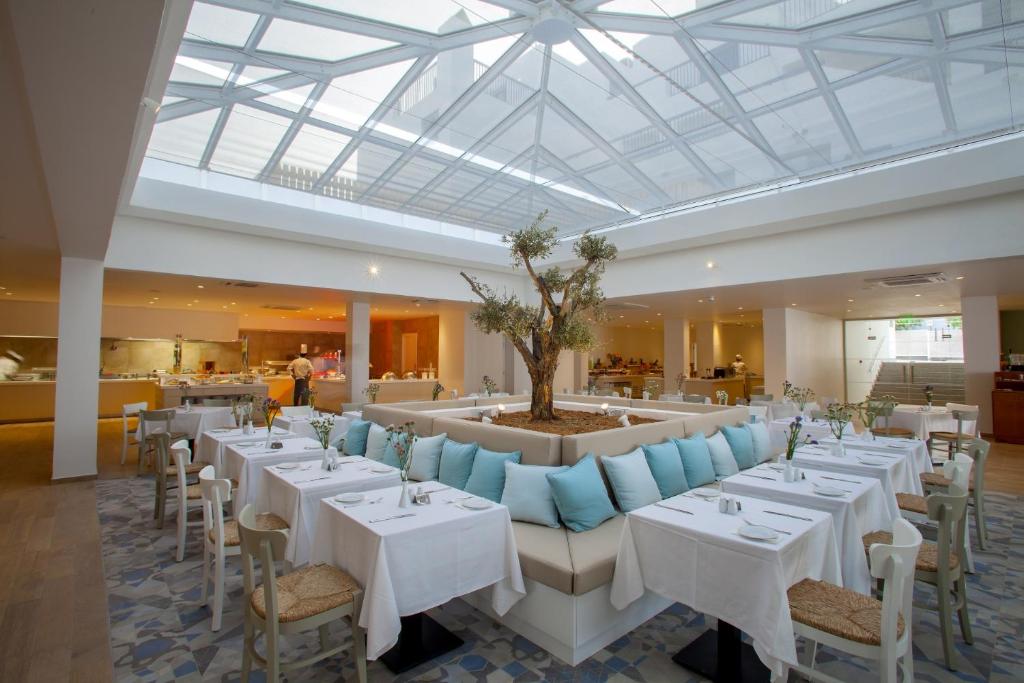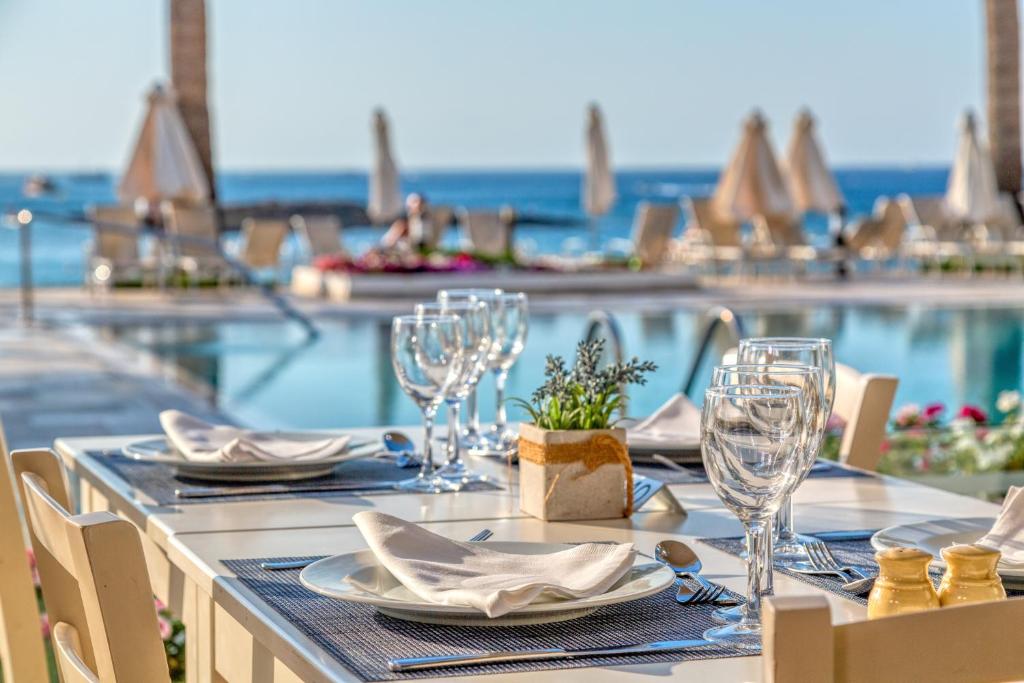 The hotel features indoor and outdoor restaurants including a Greek Taverna, an outdoor bar, 2 outdoor pools, kids pool, fitness centre, spa & wellness centre, an original kids playground, volleyball court, tennis, table tennis and a panoramic amphitheatre offering daily evening entertainment shows for both adults and children