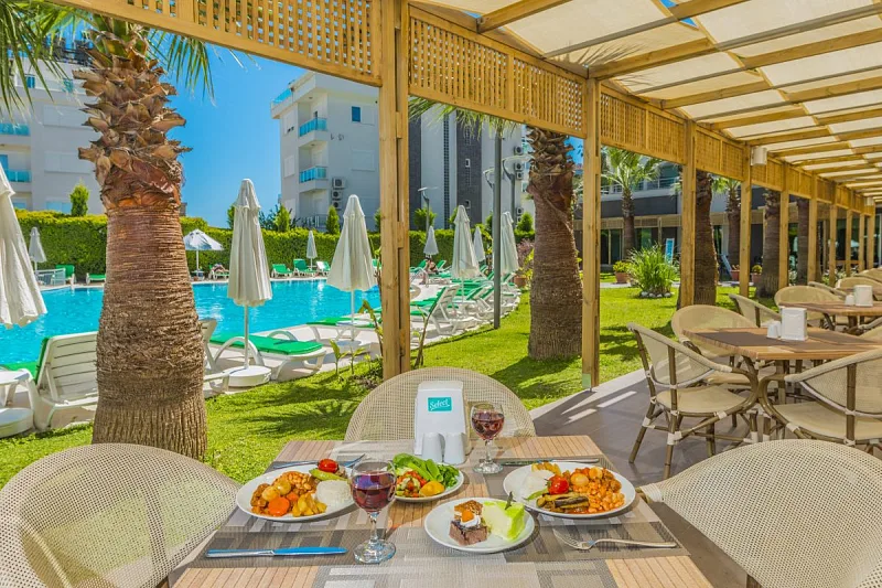 SIDE LÖWE HOTEL aroma of the Mediterranean and admirable atmosphere. Ideal place to swim, relax in the pool, outdoors surrounded by comfortable loungers.
