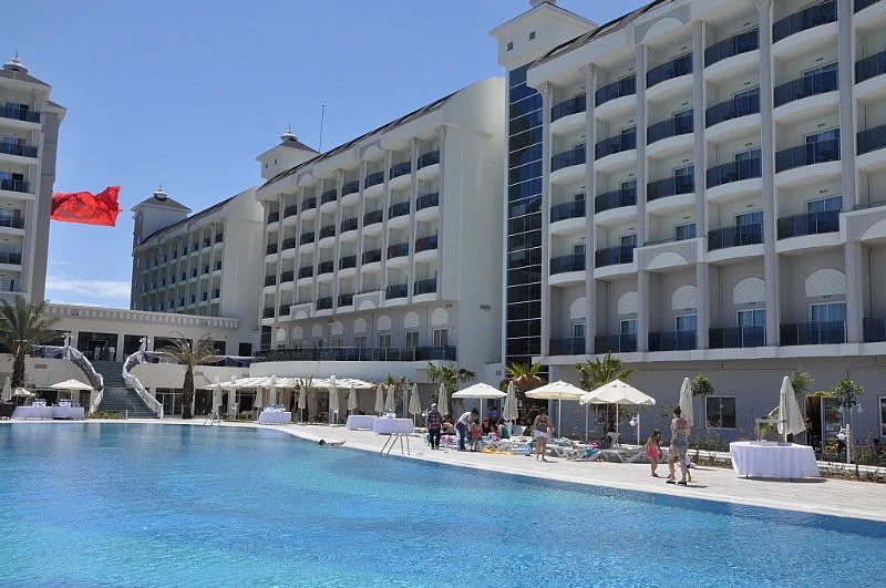 Excellently located right between Manavgat River and Lake Titreyengöl, this hotel opened in 2012 is only 750 m from the beach. The towns of Manavgat with its riverside restaurants and Side with its historic sites are about 4 km and 7 km away, respectively. Antalya Airport is at a distance of 65 km. Features of the hotel include 24-hour reception, concierge service, currency exchange, WIFI, meeting rooms, 4 restaurants, bar, spa and wellness, indoor and outdoor pool, 2 childrens pools, playground, medical assistance and laundry service.