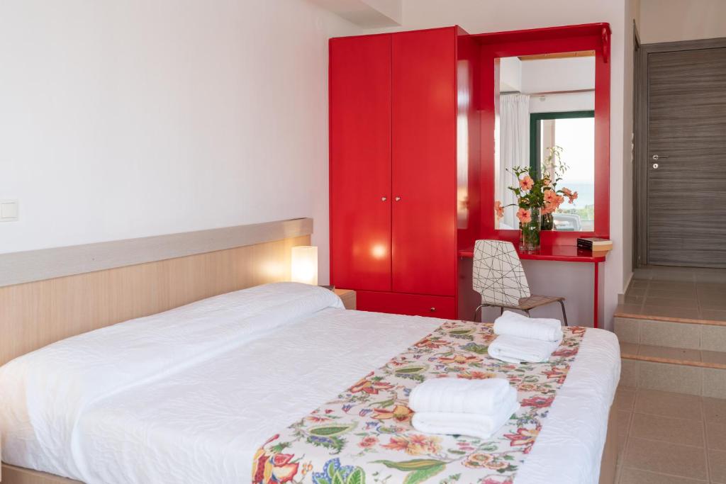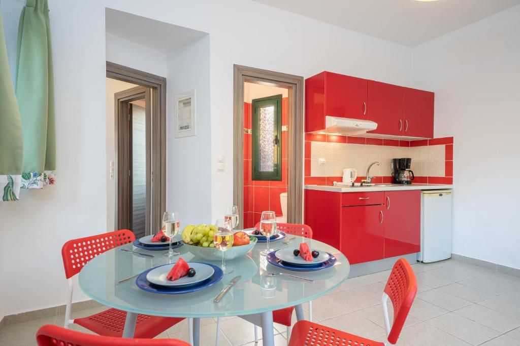 Unitățile de cazare au podea cu gresie, chicinetă complet utilată, cu frigider, zonă de luat masa, TV cu ecran plat cu canale prin satelit și baie privată cu duș și uscător de păr. Unele unități au patio și/sau balcon cu vedere la piscină sau la mare.