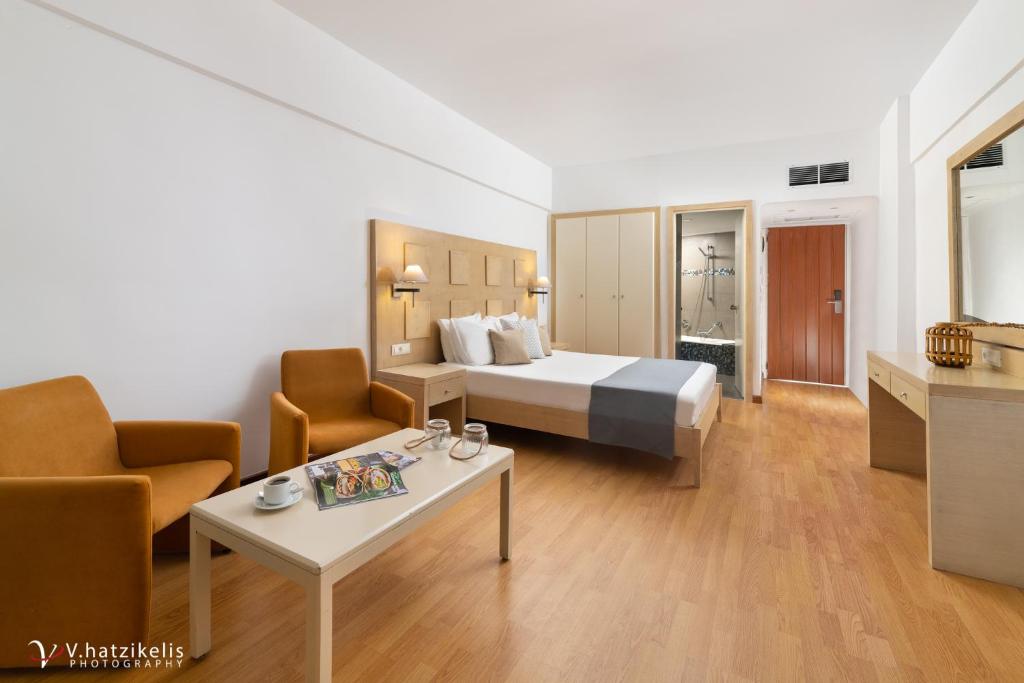 Camerele spatioase si luminoase au balcon si vedere superbă la marea albastră. Toate unitățile au baie privată și frigider.