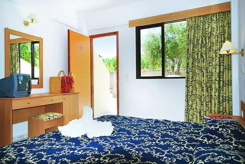 The hotel is located in Faliraki, Rhodes, in the tranquil area of Profitis Amos. It is within walking distance of central Faliraki and Faliraki Beach. Faliraki is world-renowned for its vibrant nightlife and its 5 km-long sandy beach is one of the most beautiful in all of Greece. The medieval Old Town of Rhodes is 15 km from the hotel, Faliraki Water Park is 1.5 km away, and the village of Lindos is roughly 35 km away. The airport is 12 km from the hotel.||This is a family-run hotel that offers the finest in Greek hospitality and includes facilities such as a cafe and restaurant, a lobby bar, games room, 24-hour reception and wireless Internet access. The family-friendly club resort offers 155 guest rooms in total and it is fully air-conditioned. Younger guests can let off steam in the childrens playground.||The bright standard rooms come with a private en suite bathroom with shower/WC, a hairdryer, direct dial telephone, satellite TV, mini fridge and individually regulated air conditioning. Guests may also relax on their private balcony or terrace.||The hotel offers a range of sport and recreation facilities, such as a tennis court, table tennis, minigolf and pool/snooker (fees apply). There is also an outdoor swimming pool with childrens swimming area and a poolside snack bar. The nearby beach is rocky, while Afandou golf course is 3 km from the hotel.||The hotel offers a buffet-style restaurant where guests can enjoy a variety of Greek and international dishes, which is open daily for breakfast, lunch and dinner. The pool bar serves snacks and drinks.