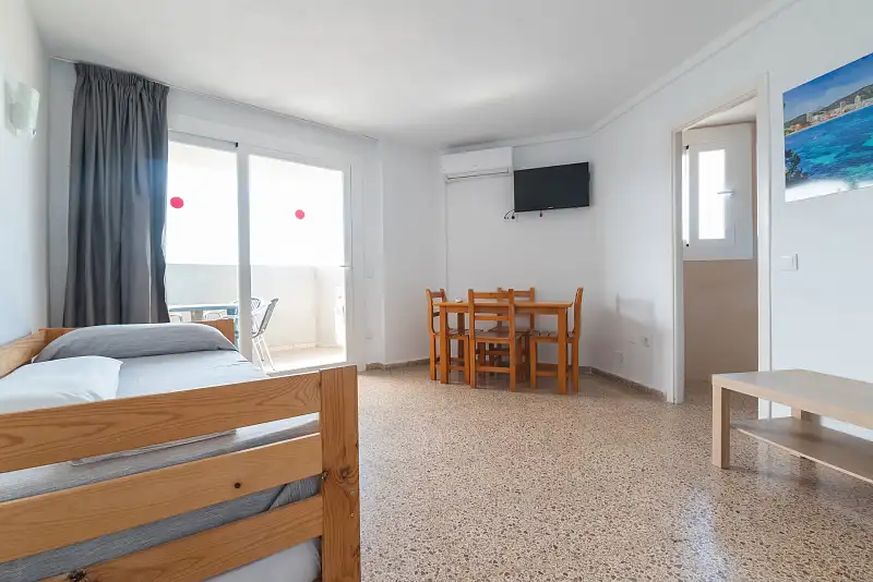The aparthotel Magalluf Playa Apartments Adults Only is located approximately 200 m from a public sandy beach. The nearest restaurants and bars can be reached in a few minutes on foot. The old town is around 10 km away. The nearest shops you can reach within around 100 m, a supermarket is just a few metres away from the hotel. There is a shuttle between the hotel and the airport (for a fee). Nearby there is a disco, a leisure park and a waterpark which offer entertainment in high season. Near the beach there is a promenade where you can go for a stroll. The hotel has a 24h reception (check-in is possible around the clock), internet access as well as 2 lifts. In the outdoor area you will find a supervised pool, where sun umbrellas are available for free. Furthermore, you can relax outdoors on a terrace. You can spend social time at the beach club. You can store your luggage in the hotel's storage room. If you want to explore the holiday region, you can use the car and motorbike rental service close to the hotel. The hotel requires that all guests pay a deposit upon arrival. Euro/Master Card and Visa are accepted as means of payment. Catering Your physical well-being is catered for by the pool bar. Distances