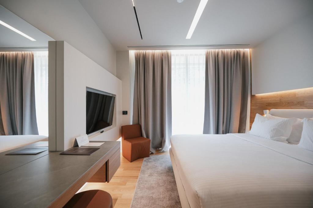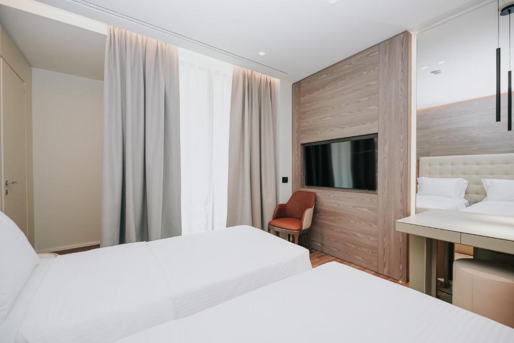 Cazare confortabilă: Magnus Hotel & SPA din Vlorë oferă camere de familie cu vedere la mare sau la grădină. Fiecare cameră include aer condiționat, balcon, baie privată și WiFi gratuit.