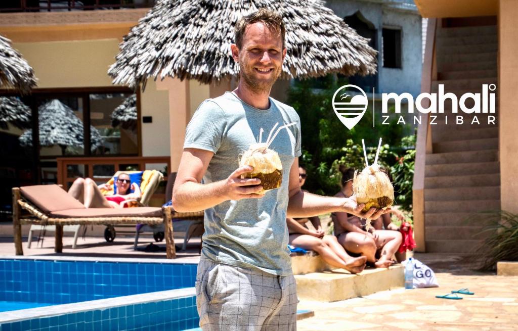 Mahali Zanzibar se află in Paje, Zanzibar și oferă zonă de plajă privată, WiFi gratuit și piscină in aer liber, deschisă pe tot parcursul anului. Hotelul oferă terasă la soare și vedere la mare. Fiecare cameră are aer condiționat și baie privată. Puteți să savurați mese à la carte la restaurantul proprietății, cu vedere frumoasă la mare, precum și băuturi la barul de pe plajă. Proprietatea oferă lounge comun.