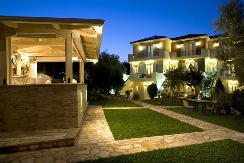 Complexul este situat in localitatea Tsoukaladhes, zona Agios Nikitas, la intrarea in statiune, in apropiere de drumul principal. Cele mai apropiate plaje sunt Kaminia si Skala Gialou, iar cosmopolita plaja Kathisma se afla la 6 km.