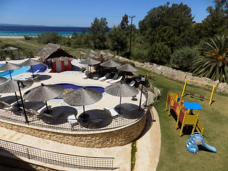 Hotelul se afla langa o plaja cu nisip, in Akti Koviou, intr-o gradina plina de verdeata. Sezlongurile si umbrelele pe plaja sunt gratuite. Oraselul cosmopolit Neos Marmaras este la 15 km, iar Nikiti este la 6 km. Aeroportul din Salonic este la 100 km.