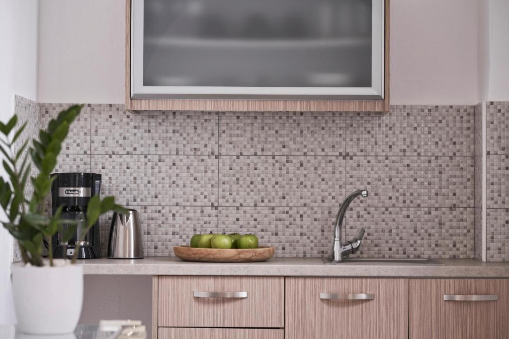 Cu acoperisuri arcuite si pereti văruiti in alb, apartamentele primitoare includ o zonă de relaxare cu o canapea si o chicinetă modernă, cu masă. In intreaga proprietate este furnizat WiFi gratuit.