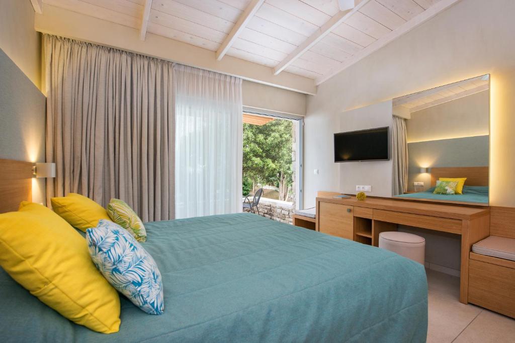 Camerele sunt decorate cu mobilier din lemn de culoare deschisă si oferă podea din marmură si aer conditionat. Acestea au TV prin satelit, aparat de ceai/cafea, frigider si baie cu uscător de păr si articole de toaletă.