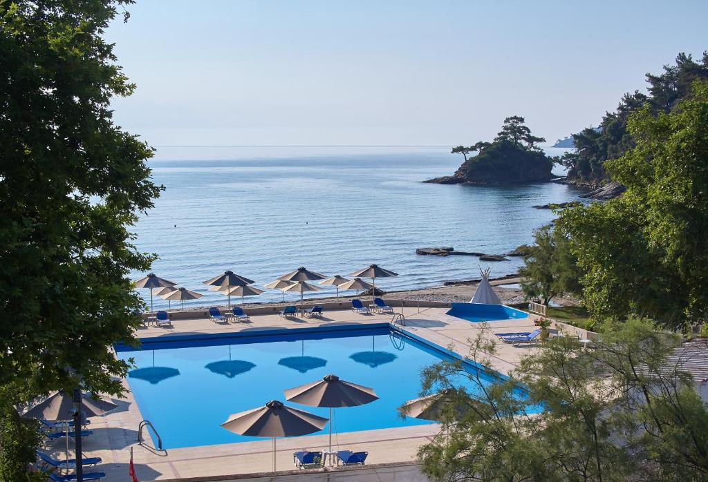 Makryammos Bungalows este situat pe plajă si oferă camere cu vedere directă la mare, amplasate intr-o pădure de pini. Complexul de 4 stele are o piscină mare si o mică grădină zoologică.