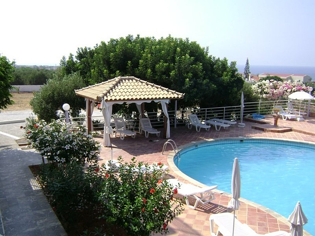 SITUACIÓN: Está situado cercano a la playa. A 25 km del establecimiento los clientes pueden encontrar el aeropuerto de Heraklion. Está situado en Hersonissos, donde encontrará bares, tiendas y restaurantes. A 350 metros puede encontrar la playa. HABITACIÓN: Los huéspedes disponen de apartamentos y estudios con teléfono de línea directa, balcón o terraza, cocina, televisión y caja fuerte con cargo extra. Además tienen cocina, sistema de aire acondicionado con cargo extra, dependiendo de la temporada y un salón-dormitorio con sofá-cama. INSTALACIONES: Los clientes tienen a su disposición una piscina, un restaurante y un bar de snacks.