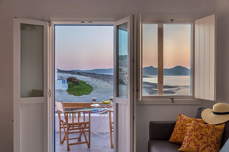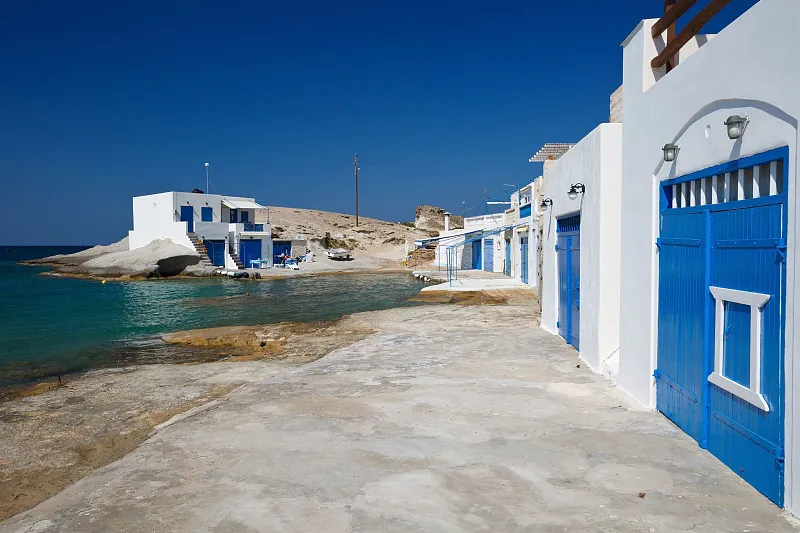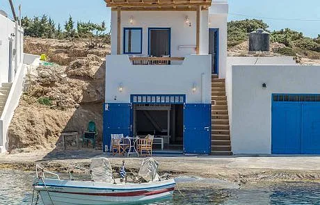 Welcome to the family run and family friendly our Manolis and Filio home -by the Sea.Our Boathouse is in the traditional fishing village of Agios Konstantinos.It is located just infront of the sea,where you can swim and enjoy the most stunning sunsets in the world.The house is also 5 minutes walking from "Alogomandra",one of the most beautiful beaches in Milos.Enjoy the breathtaking view from our balcony and live your dream in Milos .Also,seeing this fantastic view of the sea while lying in your bed is what makes the house unique.Manolis and Filio Home -By the Sea is a fully renovated house made to adapt modern needs in order to enjoy unforgettable vacations!The house is fully equipped with a coffee machine,kettle ,oven,electric,cooker and fridge.Ideal for a couple (honeymoon) or for a family with a child.