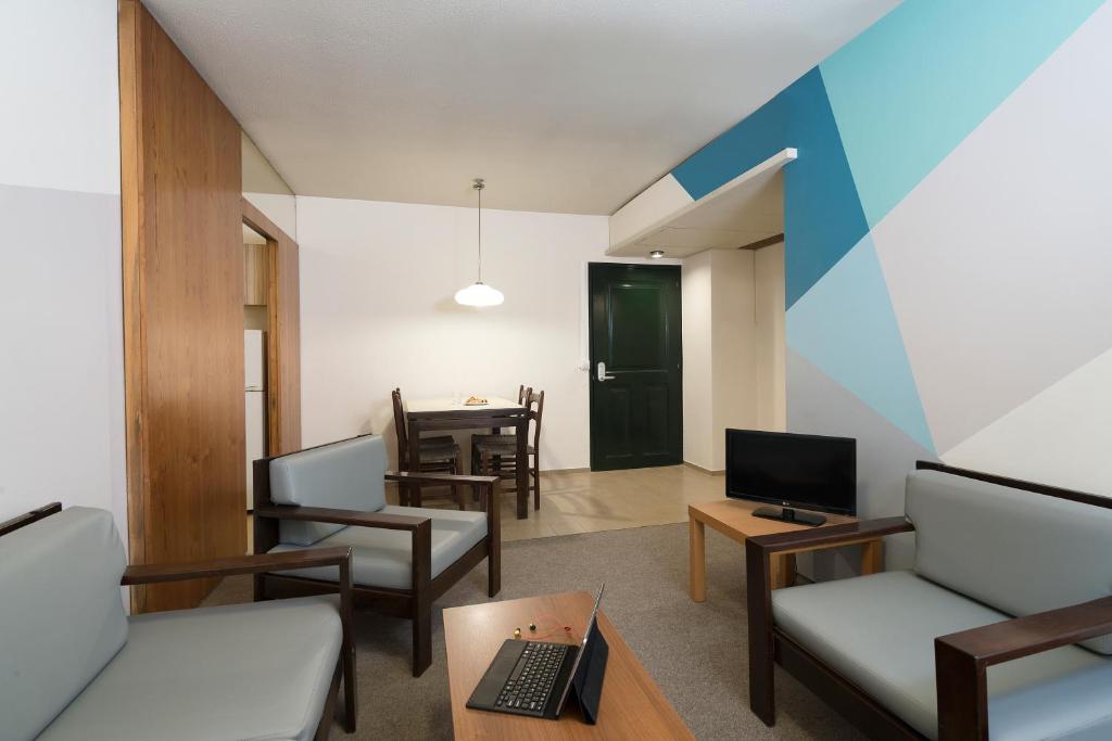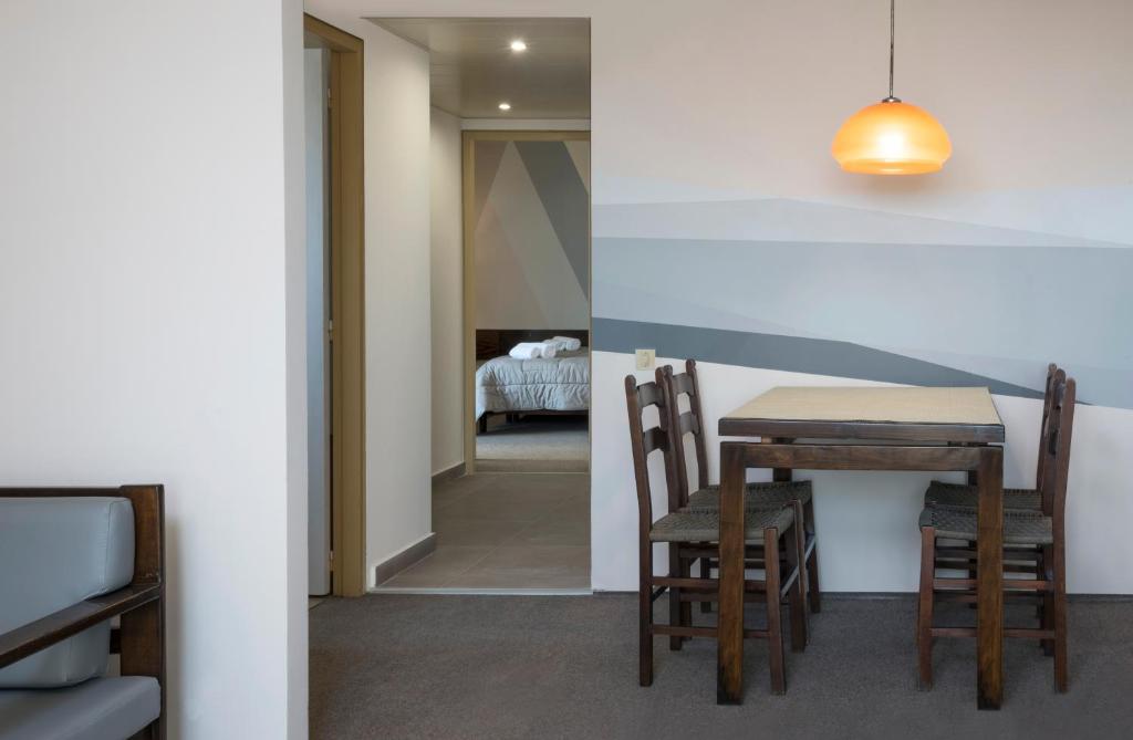 Amenajate cu mobilier din lemn de culoare inchisă si ferestre cu geamuri duble, apartamentele dotate cu aer conditionat ale hotelului Marina Alimos au o zonă de relaxare si o bucătărie utilată complet cu zonă de luat masa, frigider si aragaz. Facilitătile includ TV cu ecran plat cu canale prin satelit si player USB, precum si articole de toaletă gratuite. La cerere, oaspetii au la dispozitie fier de călcat si uscător de păr.