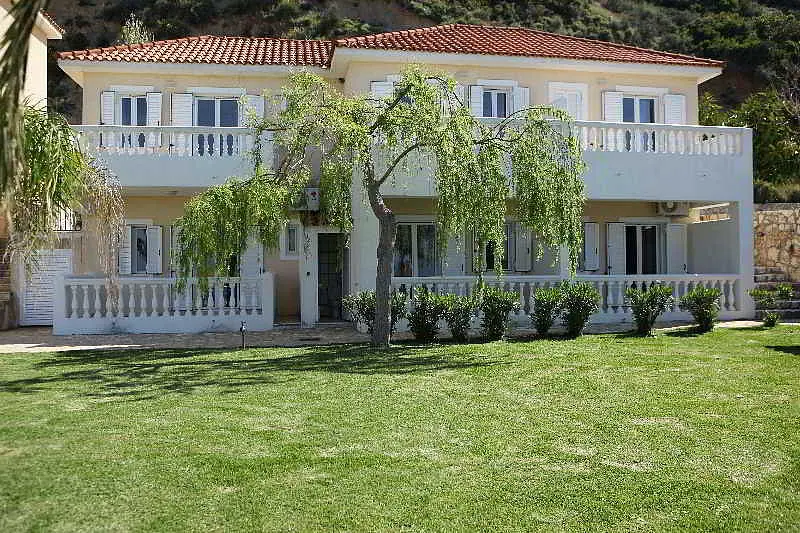 The hotel is 2.5 km away from Skala on the famous Mounda beach where the Caretta - Caretta turtles come to lay their eggs. It is a quiet and relaxing place with a view over a wonderful and endless sandy beach. This hotel is approximately 2.5 km away from Skala town centre and around 40 km from Cephalonia International Airport.||Built in 2011, this is a modern complex that consists of 30 apartments and provides an indoor bar and a restaurant, plus a TV room and free parking facilities. Guests of this air-conditioned hotel are welcomed in the lobby with a 24-hour check-out service and hotel safe. A TV lounge also features and younger guests are sure to enjoy the childrens playground. Food and drink are served at the bar and restaurant. WLAN Internet access, as well as both room and laundry services are also available at the hotel.||All the rooms are spacious and bright with a sea-view balcony. All have individually regulated air conditioning (additional costs apply), and a kitchenette with a mini fridge and tea and coffee making facilities. A shower, hairdryer, double bed and telephone are also provided, while further standard in-room amenities include satellite/cable TV, Internet access and a safe.||The hotel offers a large outdoor swimming pool with sun loungers, parasols a poolside snack bar and a childrens swimming area surrounded by beautiful gardens. For an additional fee guests can hire sun loungers and parasols at the nearby sandy beach.||A continental breakfast is served each morning, while lunch and dinner are available from a set menu.