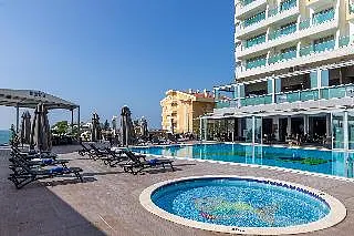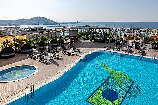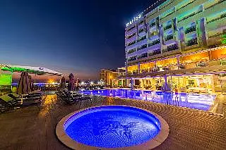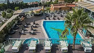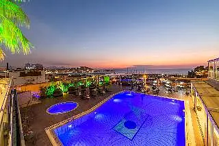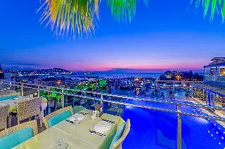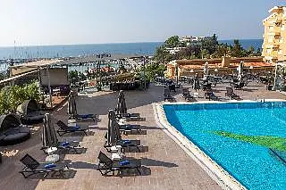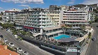 This charming hotel can be found in Kusadasi. The 102 welcoming rooms offer a perfect place to relax at the end of the day. Property DescriptionThe hotel is only a 5-10 minute walk from the resort centre along the seafront.The town beach is closest and it is roughly 500 m away while the yacht marina is only 250 m from the hotel.The closest public transport link is about 50 m away and the Kusadasi bus station is 2.5 kms from the hotel.Adnan Menderes Airport is approximately 70 kms away.Kusadasi International Golf Resort is about 17 kms away.This is a spacious city hotel with 100 guest rooms, a restaurant with indoor and outdoor seating, a choice of bars and a live music and TV room.The hotel is air-conditioned and also offers Internet access and a car park.Other facilities include a swimming pool, a table tennis, as well as many options for sunbathing