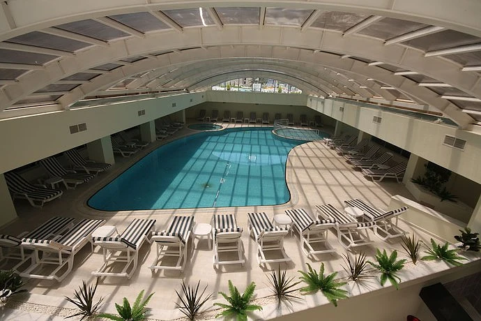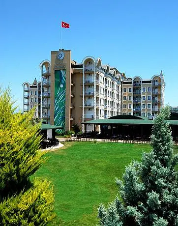 HOTEL: Este hotel cuenta con 5 plantas y 210 habitaciones confortables. El establecimiento edificado en 2008, con climatización, cuenta con un vestíbulo, una recepción, caja de seguridad, cambio de divisa y ascensor. Puede utilizar una peluquería, habitación de juegos, una cafetería, un bar y un restaurante. También ofrece a sus clientes salas para conferencias e internet. Abonando un cargo extra dispone de servicio de habitaciones y servicio de lavandería. Los clientes disponen de parking y mini club. SITUACIÓN: Está situado en Belek-Kadriye, a 2 kilómetros tiene disponible el centro de la ciudad de Kadriye. A 7 kilómetros está situado el centro de la ciudad de Belek. A 1400 metros puede encontrar una playa. A 35 kilómetros tiene disponible el centro de la ciudad de Antalya. Situado a una distancia de 25 kms del aeropuerto de Antalya. HABITACIÓN: Las habitaciones cuentan con balcón o terraza, aire acondicionado individual, teléfono de línea directa, televisión vía satélite, caja de seguridad con cargo extra, minibar con cargo extra, cuarto de baño con bañera o ducha y secador de pelo. INSTALACIONES: Los huéspedes tienen la posibilidad de tenis, un gimnasio mediante un pago adicional, ping pong, voleibol, baloncesto y dardos. Se ofrece a los huéspedes baño turco, una sauna y una bañera de hidromasaje mediante un pago adicional. El cliente puede encontrar una piscina cubierta y climatizada, 2 piscinas con zona de baño infantil, un bar al aire libre, una playa privada con tumbonas, mediante un abono extra, toallas, toboganes, parque acuático y parque infantil. Los clientes tienen disponible un salón donde poder ver la televisión, anfiteatro y programa de animación. Está situado en los alrededores de un campo de golf. MÉTODOS DE PAGO: Se admite Mastercard y Visa. OTRAS: Puede hacer su reserva en régimen de todo incluído.