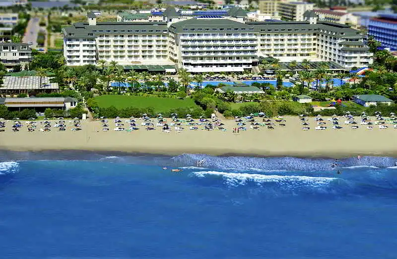 Built in 2006, this air-conditioned beach hotel comprises 7 floors with 470 rooms of which 57 are suites and 5 rooms have been adapted to cater for disabled guests. Amongst the facilities count a foyer with a 24-hour reception desk, a safe, a currency exchange desk, 4 lifts and 5 restaurants in addition to a café, 5 bars, a nightclub, a TV room, a childrens playground, a games room and conference facilities. A selection of shops and a hairdressing salon are available for use. Fees apply for the medical assistance (located within 3 km of the hotel). Room service, as well as laundry and ironing services are available.