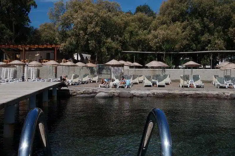This family-friendly beach hotel enjoys a tranquil setting 1km from the charming village of Akyarlar and 9km from the bustling town of Turgutreis, home to a popular weekly market and a bus station. Restaurants and bars are within easy reach in Akyarlar center, and public transport is conveniently located on the main road, a mere 100m from the hotel. The cosmopolitan town of Bodrum, with its vibrant nightlife, extensive marina, and impressive St. Peter's Castle, is approximately 18km away. Milas Airport is about 53km from the hotel. Built in the simple, whitewashed style characteristic of Bodrum, the three-story hotel offers guests a relaxing stay. Unwind in the inviting bar area with comfortable sofas, enjoy refreshments at the beach bar, or stroll through the grassy garden leading to the beach and pier. Complimentary Wi-Fi is available in the restaurant and around the pool area, and an internet corner is provided in the lobby (fees apply). Additional amenities include a 24-hour reception and check-out service, safe, currency exchange, and TV lounge. Parking is available for guests arriving by car. The simply furnished rooms feature tiled floors and offer modern comforts such as air conditioning, satellite TV, a minibar (fees apply), hairdryer, and telephone. Each room also includes a private bathroom with a shower, a double bed, internet access, a safe, and individually controlled heating.