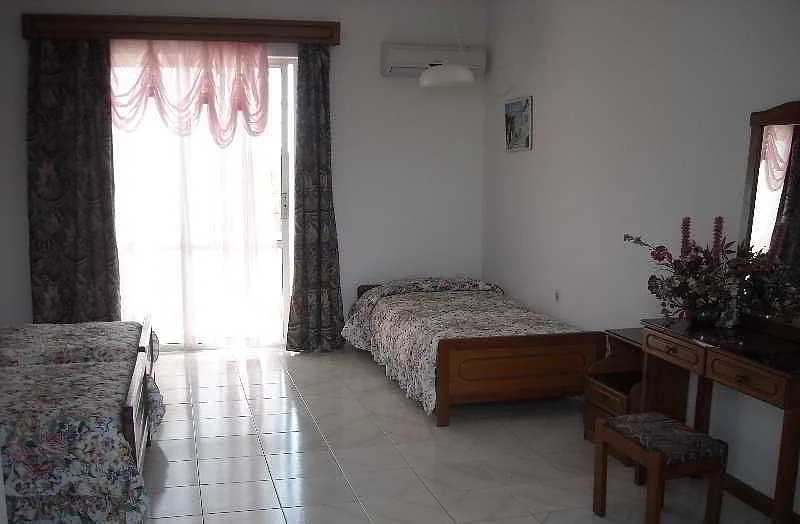 The studios are situated in the centre of Faliraki, set back on a quiet street away from the main road. It is a short stroll to the lively resort centre and 10 minutes away from the famous beach of Faliraki. The bus station is around 200 m away. Shopping facilities can be found some 400 m from the hotel, or around 15 km away in Rhodes. Kathara Bay is around 700 m away and Ladiko Bay is roughly 1.5 km from the property.||This is a beautiful studio complex that comprises 32 rooms in total. The units are set in a nice garden area including spacious terraces. It also includes a bar, TV room, breakfast room and car parking area. Other facilities at this apartment hotel include a lobby, 24-hour reception and check-out services, a hotel safe and currency exchange facilities. Guests can also make use of the games room and wireless Internet access.||All studios provide individually regulated air conditioning (with an extra charge), a mini fridge, an en suite bathroom with a shower, a balcony or terrace.||The complex offers a nice outdoor swimming pool, a great poolside snack bar and a relaxing atmosphere. Sun loungers with parasols are laid out ready for use on the sun terrace and on the nearby sandy beach.