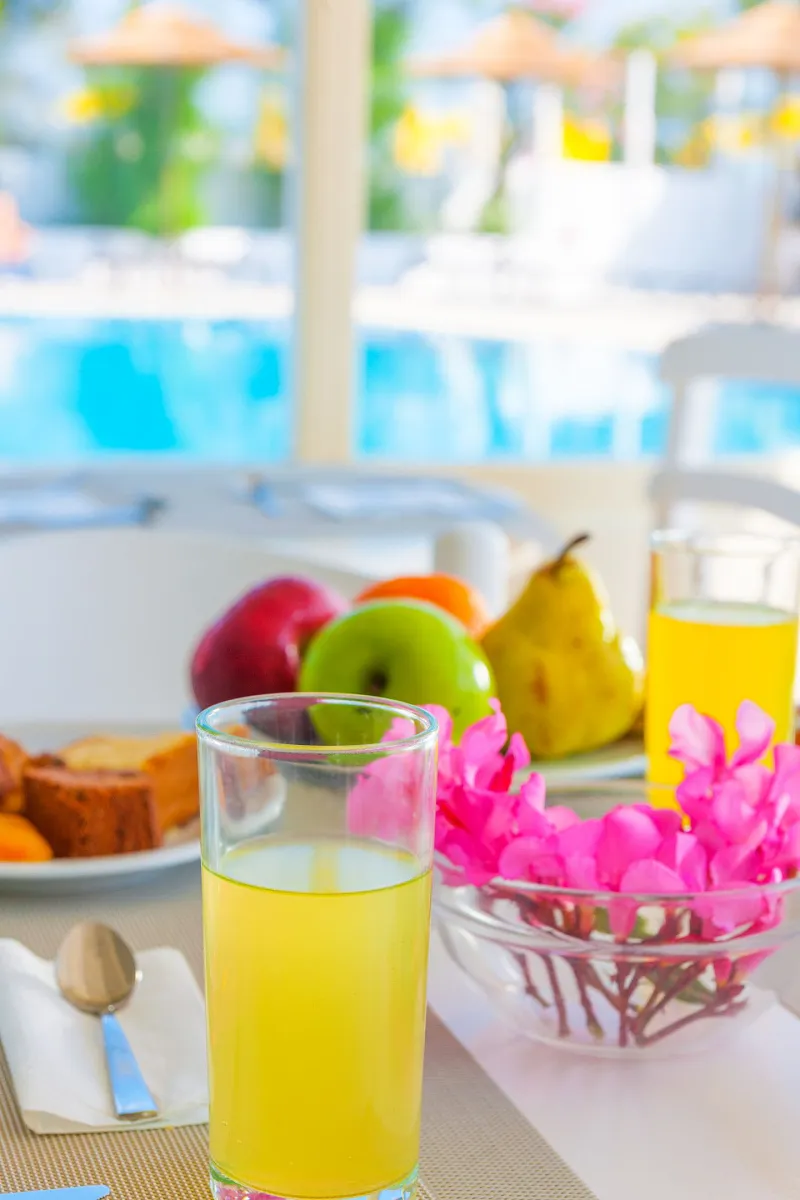The hotel offers spacious rooms with private balcony with sea, garden or mountain views, as well as air conditioning, satellite TV, safe, refrigerator and hairdryer.