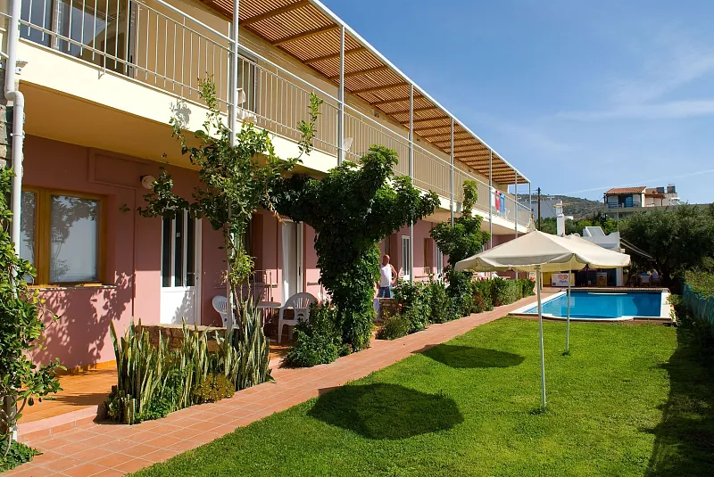 Mirabella Apartments is a beachfront property set in a beautiful spot, with all the apartments enjoying views to Havania beach and Mirabello Bay. Free Wi-Fi, push bikes and free car parking are offered on site. All Studios and Apartments feature a sea-view with balcony or courtyard and have free air conditioning, a kitchen or kitchenette with fridge, toaster and kettle and a private bathroom with shower. Smart, yet friendly and informal, beachfront Mirabella Apartments are ideal for a family or single´s holiday. The hotel’s Mediterranean garden features a swimming pool with an embedded jacuzzi and a pool bar that overlooks the Mirabello Bay. Breakfast, lunch and all-day snacks, along with a large variety of beers and drinks area available by the pool-side. The mini-market can cover the majority of guests's needs during their stay. Stand up Paddle (SUP) lessons and board rental available nearby. Mirabella Apartments are 3 km from Aghios Nikolaos, 7 km from Elounda, and 60 km to Heraklion Airport.