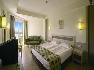 HOTEL: Este hotel con sistema climatizado, cuenta con un vestíbulo, una recepción, una terraza, 265 habitaciones y 4 plantas. En la entrada se dispone de un vestíbulo con recepción, caja de seguridad, cambio de divisa y guardarropas. También ofrece a sus clientes ascensores, una cafetería, kiosko, minimercado y tiendas. También cuenta con un bar, una peluquería, discoteca, una sala de juegos y un teatro. Los clientes pueden disponer de un restaurante a la carta con climatización con sillas altas para los niños, una sala de conferencias y wifi. El cliente puede encontrar diversos servicios como servicio de lavandería, atención médica y alquiler de bicicletas. Para los niños se dispone de un miniclub y un patio de juegos para los mas pequeños. Tiene un parking. SITUACIÓN: Este hotel, está a unos 3 minutos de una playa. Cercano al establecimiento hay una parada de transporte público. Se sitúa a 500 metros de restaurantes, bares, discotecas y tiendas. Puede encontrar a 8 km la zona turística. Situado a una distancia de 10 kms del corazón de la ciudad. Se encuentra bien conectado, está situado a 65 kilómetros del aeropuerto de Antalya. HABITACIÓN: Dispone de suites, habitaciones tipo standard, apartamentos de una habitación con salón-dormitorio. Tienen baño con secador de pelo, teléfono, televisión satélite o por cable, radio, cama doble, calefacción individual, aire acondicionado individual, balcón o terraza, minibar y caja fuerte con cargo extra. INSTALACIONES: En la zona exterior dispone de una piscina con una zona para niños, bar donde tomar un aperitivo, tumbonas y sombrillas. Los clientes tienen a su disposición una piscina cubierta, una sauna y servicio de masajes mediante un pago adicional. Puede realizar actividades como gimnasia acuática, esquí acuático, practicar surfing, piragüismo, remo, windsurf, vela, motos de agua, barco torpedo, lancha motora, catamarán y barca a pedales. Algunas actividades mediante un pago adicional. Además los huéspedes podrán disfrutar de jugar al tenis, baloncesto, voleibol, volley playa, petanca, jugar al billar mediante un pago adicional, gimnasia y aerobic. Se ofrece un programa de entretenimiento. MÉTODOS DE PAGO: Se admite American Express, Visa y Mastercard. OTRAS: Se proporciona todas las comidas en buffet. Se puede reservar en régimen de todo incluído.