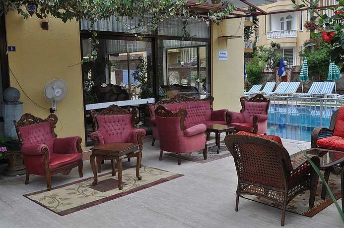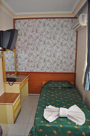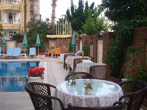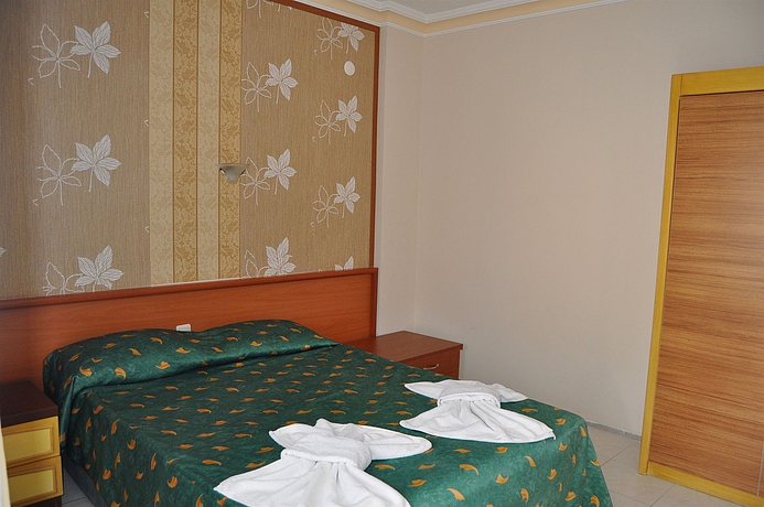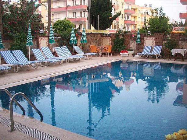 HOTEL: Este hotel es ideal para unas vacaciones en familia, cuenta con 38 habitaciones, un vestíbulo con servicio de salida express, una recepción, caja de seguridad, servicio de cambio de moneda, ascensor, un restaurante, un bar y un parking. También ofrece a sus clientes wifi, servicio de habitaciones y servicio de lavandería con cargo adicional. SITUACIÓN: El hotel, está en Obagol-Alanya, a 150 metros puede encontrar la estación de autobuses. Está bien conectado con los lugares turísticos. A 120 kilómetros está situado el centro de Antalya y el aeropuerto de Antalya. HABITACIÓN: Las habitaciones cuentan con baño con ducha, secador de pelo, cama doble o king size, balcón o terraza, teléfono de línea directa, televisión satélite, caja fuerte y sistema de aire acondicionado individual. INSTALACIONES: Los clientes tienen a su disposición una piscina con una zona para niños. Se realizan actividades como jugar al ping pong. En la playa puede encontrar tumbonas y sombrillas. COMIDAS: En lo referente a lo gastronómico el establecimiento dispone de desayuno tipo buffet continental y almuerzo y cena dispuesto como buffet, a la carta o menú. MÉTODOS DE PAGO: Se acepta Mastercard y Visa.
