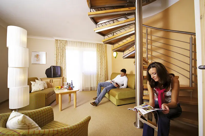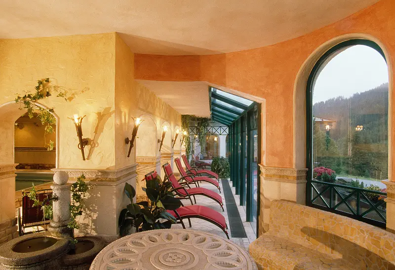 size wellness area 200 m², indoor swimming pool 32 m², spa area: children of 1 years. only in the company of an adult, steam bath, finish sauna, bio sauna, infrared cabin, relax room, massage - optional payable in resort, garden, lawn, deck chair - free of charge, sun umbrellas - free of charge