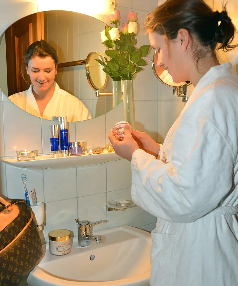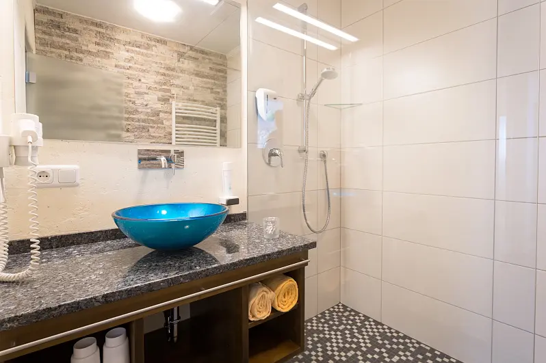 bath room: bath tub / shower, toilet, hair dryer, bath robe - optional payable in resort, EUR 15.00 per person and week