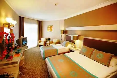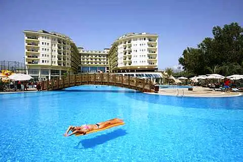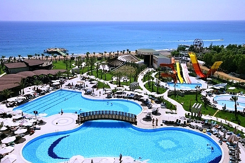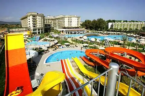 Hotelul dispune de 420 camere in cladirea principala, din care 264 camere standard, 54 junior suite, 7 family room, 10 executive suite, 1 king suite,restaurante principal, 4 restaurante a la carte: turcesc, chinezesc, italian si pescaresc, lobby bar, bar la piscina, bar la piscine, café bar, snack bar, vitamin bar, disco bar, teren de tennis, volei, tennis de masa, centru fitness, sporturi nautice, baie turceasca, sauna, piscine interioara si exterioara cu sectiune pentru copii, masaj, tobogane, dart, animatie si mini club.