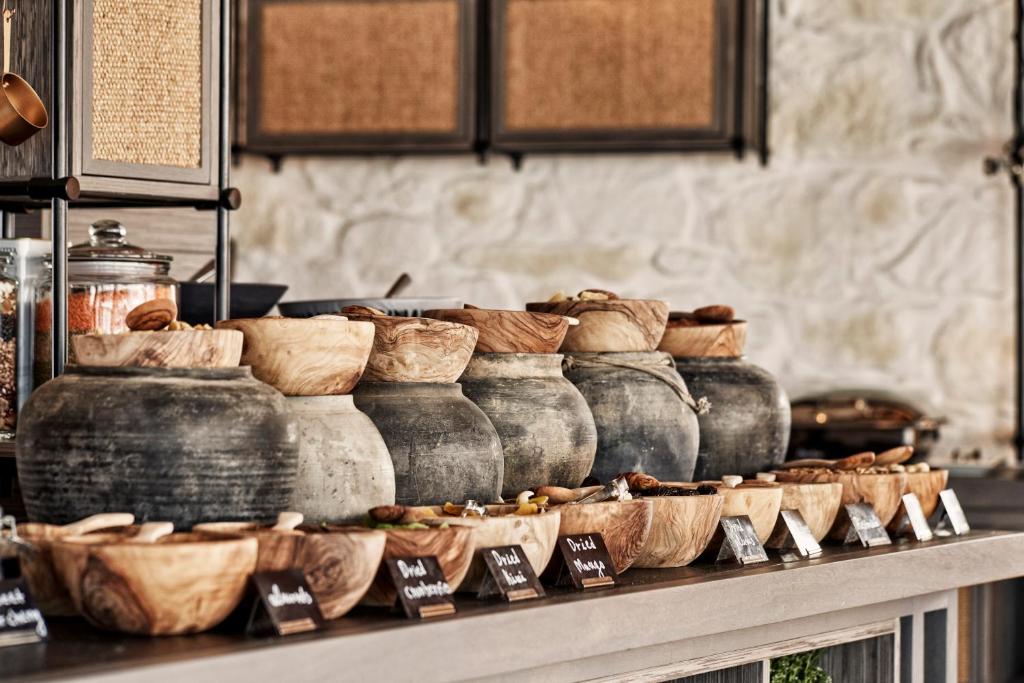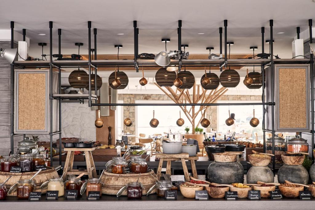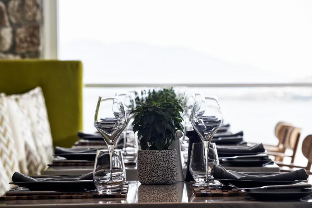 Restaurantul hotelului servește preparate mediteraneene rafinate, cu accent pe bucătăria grecească contemporană. Poziționarea centrală permite accesul facil la celebra Little Venice și la viața vibrantă din Mykonos Town, aflate la cateva minute de mers pe jos.