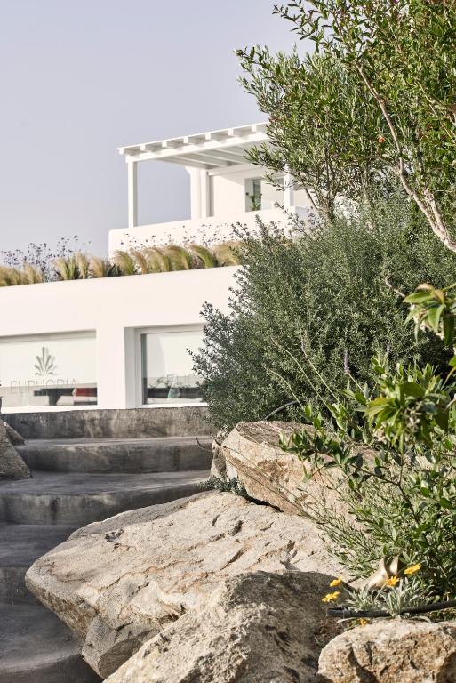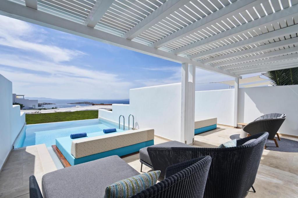 Myconian Kyma, Design Hotels se află intr-o poziție privilegiată in Mykonos Town, oferind panorame spectaculoase asupra Mării Egee și a celebrelor mori de vant din Mykonos. Acest hotel boutique de 5 stele imbină perfect stilul arhitectural cicladic cu elementele moderne de design.