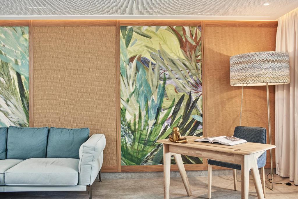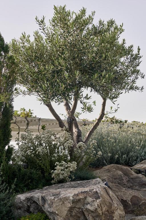Camerele și suitele, decorate in nuanțe de alb și albastru specific grecesc, dispun de balcoane private sau terase cu vedere spre mare sau grădină. Facilitățile de top includ piscina infinity cu șezlonguri și zonă de lounge, un spa cu tratamente de relaxare și un centru fitness modern.