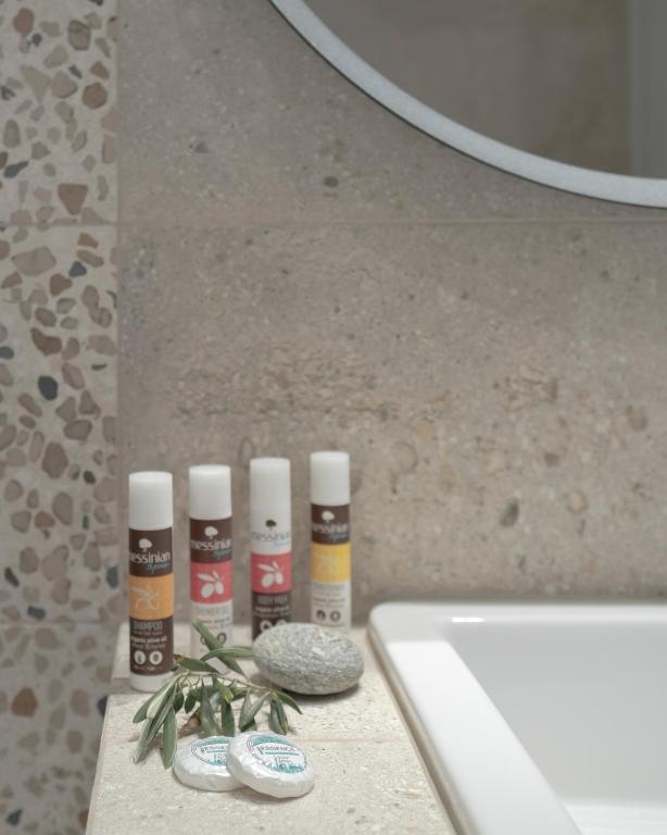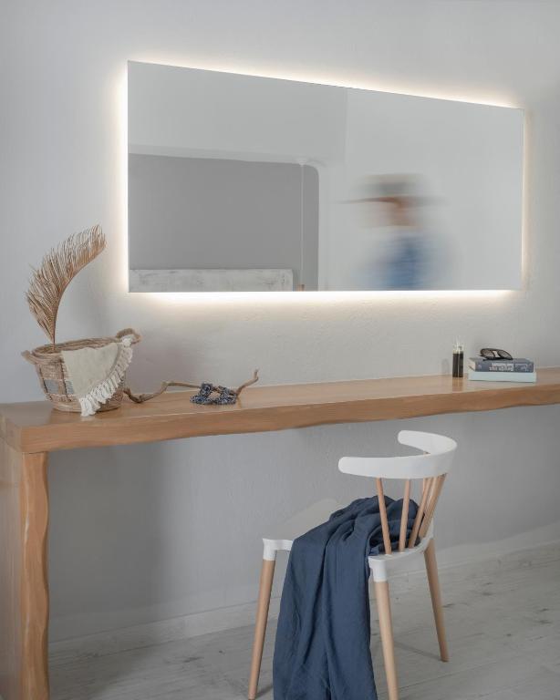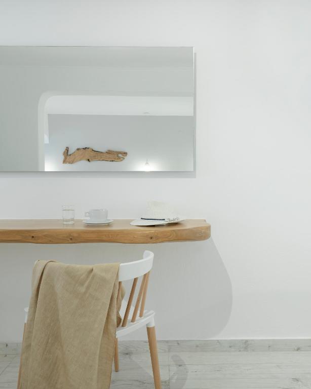 Toate camerele Hotelului Mykonos Essence sunt dotate cu minifrigider, TV și cutie de valori. Camerele includ prosope de plajă și baie privată cu uscător de păr, produse de ingrijire personală de origine greacă și articole de toaletă gratuite. Unele unităti includ halate de baie si papuci.