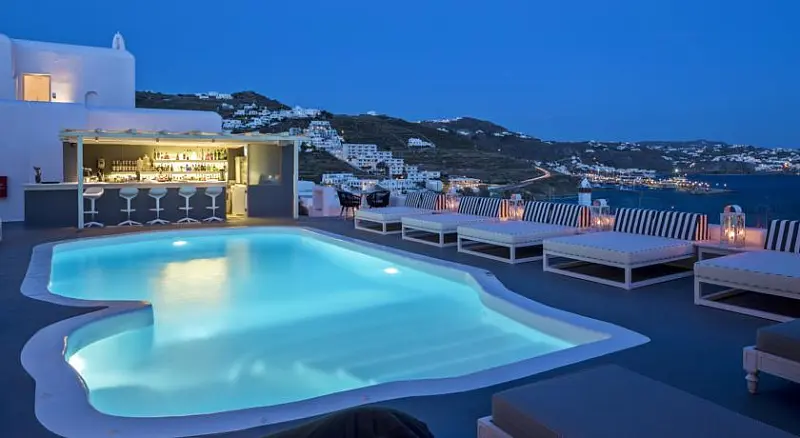 Hotelul Princess of Mykonos 5* este situat in Agios Stefanos, la aproximativ 200 m de plaja Agios Stefanos , 3,5 km fata de Mykonos Town si 2 km de port. Distanta fata de aeroportul international din Mykonos este de aproximativ 5 km.