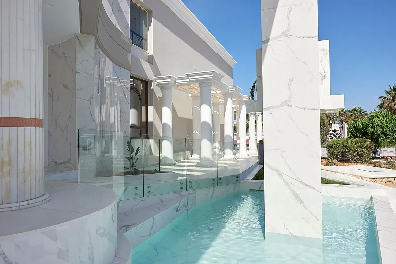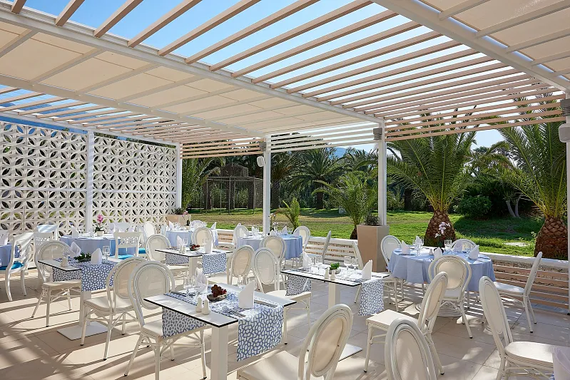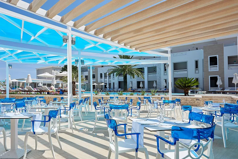 Mythos Palace Resort & Spa stands for its fresh design, modern look, and services of the highest possible standards. Mythos Palace offers 24-hour restaurant service, minibars with a variety of drinks and beverages, complimentary safe-boxes and free Wi-Fi throughout the hotel complex. The elegant rooms and common areas, combined with the additional services offered in the Premium All-Inclusive Package ensures a stay that is carefree and exquisitely comfortable.