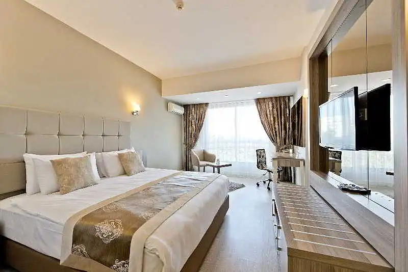 This modern, family-friendly hotel is located just five minutes from the city-centre of Antalya, perfect for a relaxing holiday in this renowned beach town. The hotels 97 rooms are spacious, comfortable and air-conditioned, while its fully-equipped conference centre and theatre, complete with stage, can seat up to 250 guests. Restaurants, cafes, shops and entertainment can all be found nearby, and the citys largest shopping centre is within walking distance. For added convenience, the hotel offers a free shuttle service to the famous Konyaalti Beach with its gorgeous views of the mountains, sun loungers, snack bars, cafes, shops and family fun park. Guests may enjoy a visit to the old town for historical and cultural attractions such as beautiful, 14th century Yivli Minare Mosque, widely known as the symbol of the city, and the prize-winning Antalya Museum. This hotel is ideal for business as well as a relaxing holiday spent lounging on the pebble beach.