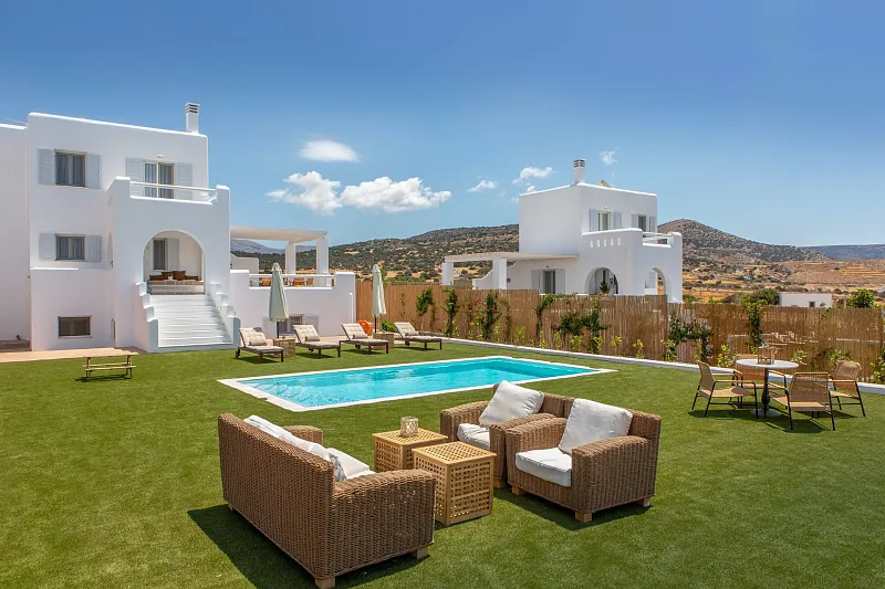 In the south-west coast of Naxos, at Pyrgaki, just 100 meters away from the sea, a complex of 26 independent holiday villas have been laid, 13 of which are ready to welcome you to a comfortable and pleasant stay. The panoramic view of the sea, the magnificent Cycladic natural landscape, the sheltered southern ‘golden’ sand beach and the calmness of the area are ideal conditions for pleasant summer holidays.