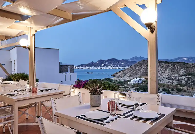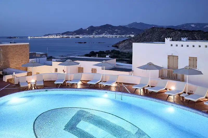 Built amphitheatrically on the slope of Stelida hill so as to offer a breathtaking view of the Aegean sea and the nearby town of Naxos (also known as Chora), Naxos Magic Village Hotel invites you to enjoy truly magical and relaxing holidays on the historic island of Naxos in the Cyclades.