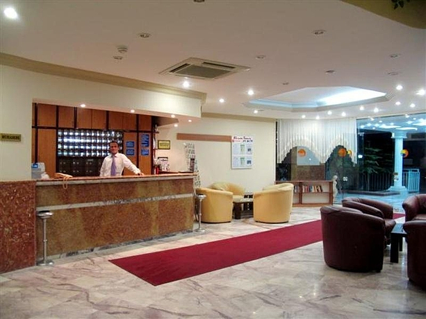 HOTEL: Este hotel cuenta con una recepción, un bar, un restaurante y una piscina. Los clientes pueden encontrar terraza, solarium, ascensor y servicio de consigna de maletas. SITUACIÓN: A 100 metros dispone del centro urbano. Está situado a 600 metros de la playa. HABITACIÓN: Las habitaciones cuentan con sistema de aire acondicionado con cargo extra, televisión, teléfono de línea directa, minibar, secador de pelo y balcón. OTRAS: Puede hacer su reserva en régimen de todo incluído.