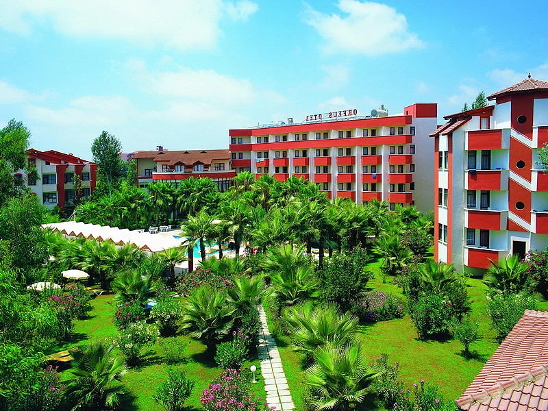This lovely holiday hotel is located within walking distance from the centre of Çolakli and 350 m from the beach (free shuttle service). The historic town of Side with its ancient sites is 9 km away, the airport of Antalya 55 km. The hotel offers 102 rooms, 24-hour reception, currency exchange, TV room, restaurant, 3 bars, outdoor pool, childrens pool, mini-club, wellness, medical assistance and laundry service.
