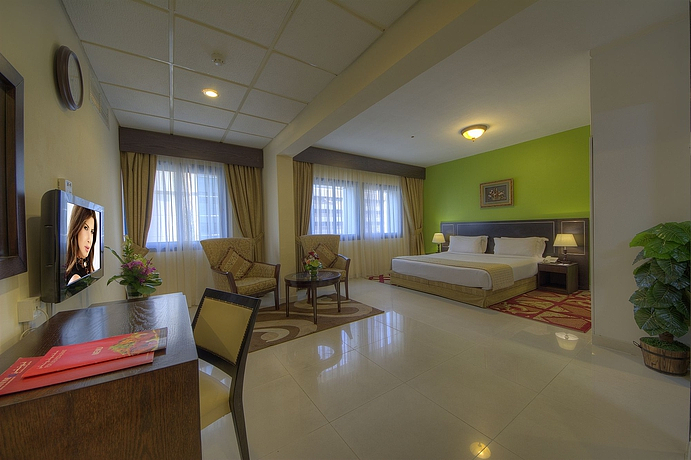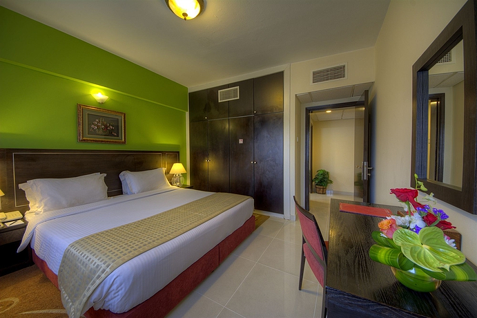 HOTEL: Este aparthotel ideal para unas vacaciones en familia, reformado en 2009, cuenta con 56 apartamentos, sistema de aire acondicionado, un vestíbulo con servicio de salida express, una recepción, caja de seguridad, cambio de divisa, un guardarropa y ascensor. Se ofrece a los huéspedes una cafetería y un restaurante. Los clientes de este establecimiento también pueden encontrar wifi de pago directo, servicio de habitaciones, servicio de lavandería, un parking y un garaje. SITUACIÓN: Este establecimiento está en una zona céntrica de Bur Dubái. Cerca de Bank Street y el Canal de Dubai, está situado en Sheikh Zayed Road, World Trade Centre, y el aeropuerto internacional de Dubai. HABITACIÓN: Está formado por apartamentos de una habitación con aire acondicionado centralizado, cocina con nevera, placas, un microondas, cafetera y tetera. Cuentan con baño con ducha, una bañera, secador de pelo, cama doble, teléfono, televisión satélite o por cable, caja de seguridad, wifi, lavadora, set de plancha y balcón o terraza. INSTALACIONES: El cliente podrá disfrutar de una piscina en la azotea, la sauna y un gimnasio. A 4 kms los clientes pueden encontrar un campo de golf y el puerto deportivo.